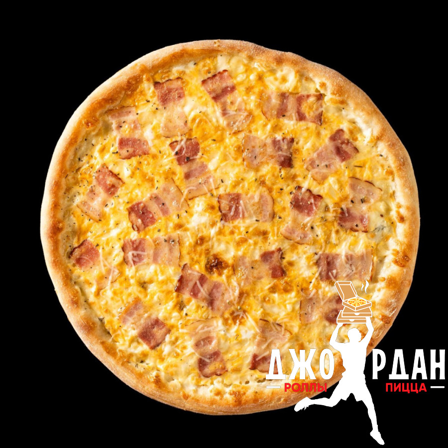 Бекон, яйцо, пармезан, моцарелла, фирменный белый соус
