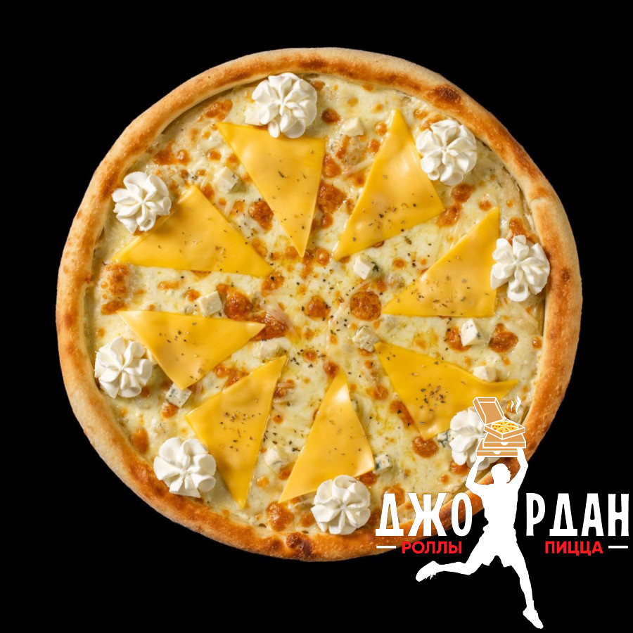 Чеддер, дор-блю, сыр Cremette, пармезан, моцарелла, фирменный белый соус